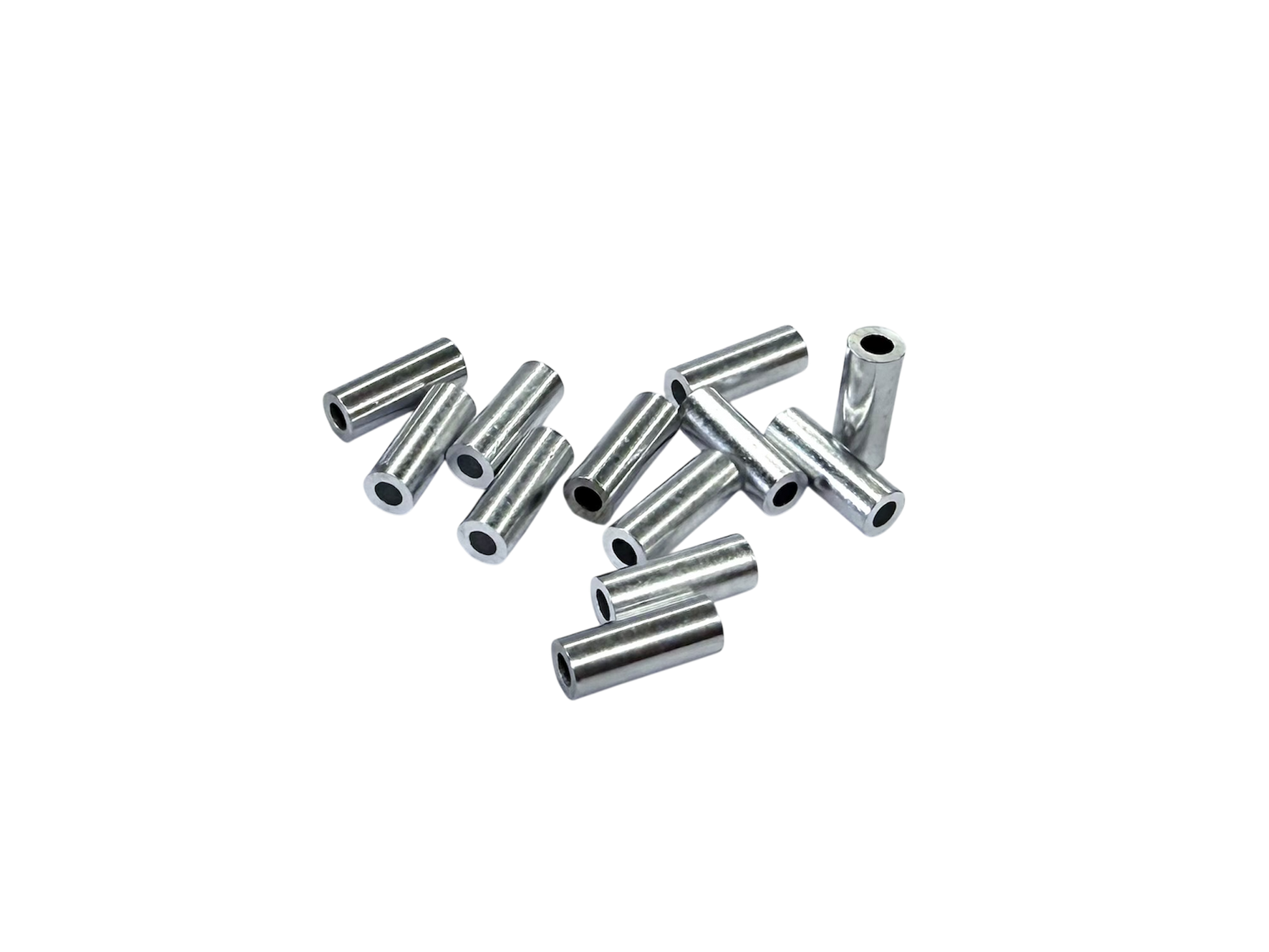 Round aluminium crimps used to prevent the lure head from compressing control sleeves prematurely.